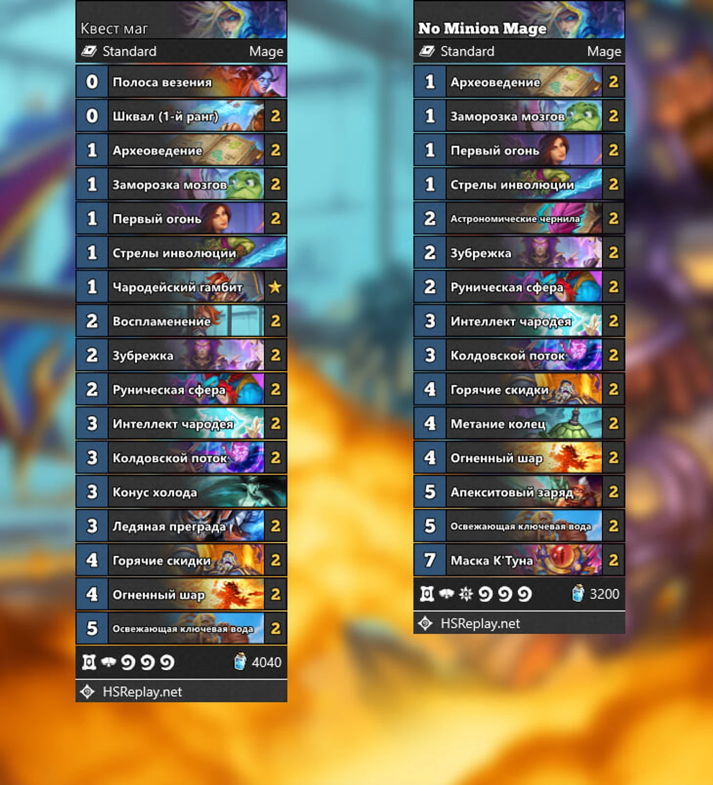 Маг на заклинаниях – вариация квестового для тех, у кого нет квеста. Но лучше придержать пыль до возвращения контрольных колод в мету, потому что у этого мага нет ни одного положительного матчапа с агрессивными колодами.