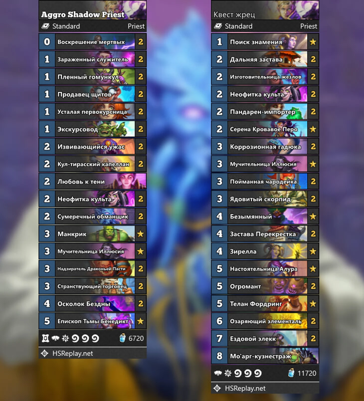 А более медленные варианты едва наскребают 50% винрейта. Квестовый жрец, которого до выхода дополнения требовали растерзать и предать забвению, не доживает до 10 хода, чтобы даже с идеальной рукой и заходом разыграть свой осколок. Но если вы не собираетесь поднимать ранги и хотите просто повеселиться, то вот колода для экспериментов.