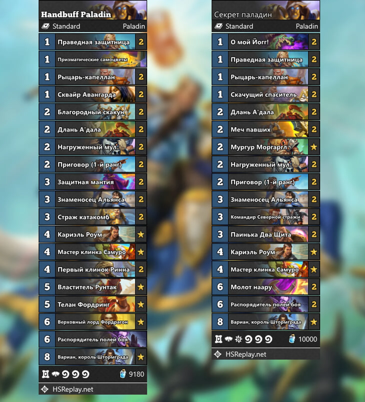 Вот уж кому не страшны никакие нерфы – паладин уже не первое дополнение занимает топ лучших классов. У хэндбафф-паладина есть ресурсы, чтобы тягаться с агрессивными деками за стол и параллельно наносить урон, поэтому у него почти нет плохих матчапов (кроме квестового разбойника). Секретный паладин после нерфа «Приговора» тоже слабее не стал.
