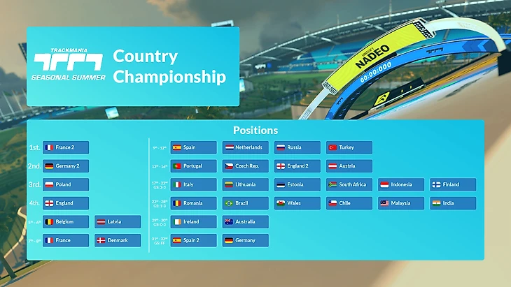 В эти выходные прошли матчи финальной стадии международного турнира TrackMania Seasonal: Country Championship, являющегося неформальным чемпионатом мира в главной аркадной киберспортивной гонке на планете. Из тридцати двух команд, зарегистрировавшихся на турнире, лишь шестнадцать сильнейших добрались до этой стадии, и сборная России была в их числе.
