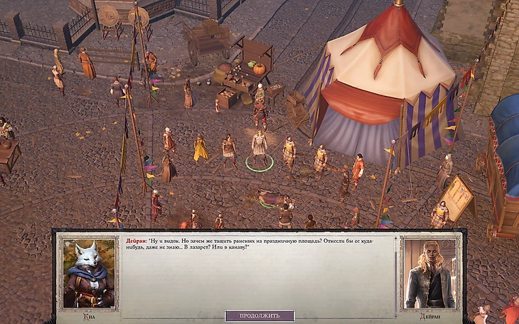 Но сначала отправляемся в город Кенабрес. Ну как отправляемся – нас туда приносят раненым на площадь, где мы, пообщавшись с парой NPC и опробовав начальные вариативные диалоги, пьем кружечку пенного за день города. Чтобы, конечно, после этого сразу увидеть нападение демонов, кровавую баню, провалиться под землю(можно ли было еще ярче подчеркнуть связь с оригинальной Dungeons & Dragons?), встретить первых компаньонов, победить первых врагов.