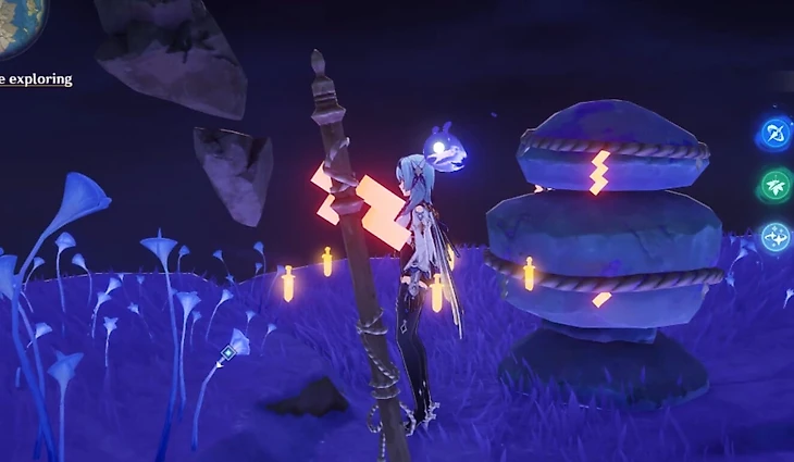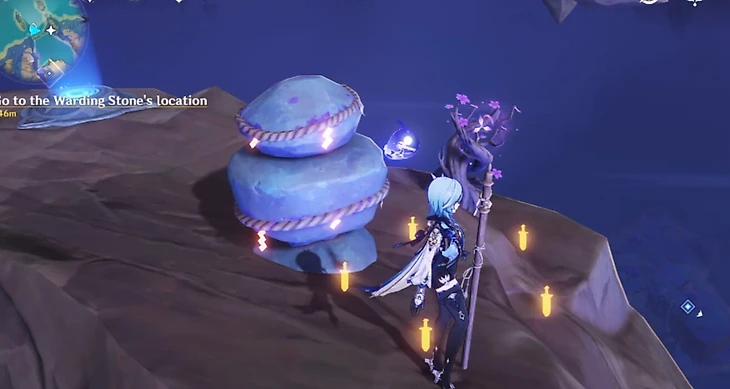 Захватите электрогранум и отправляйтесь по «Громовым сферам». Отыщите небесный архипелаг, там будет один из шестов и сам Запирающий камень.