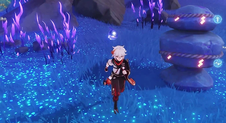 Идем к этому самому камню (он рядом со статуей Архонта), разговариваем с Эйко и Тайсукэ.