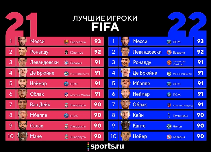 Мы дождались: EA Sports опубликовала рейтинги лучших игроков FIFA 22. Отличий мало, но не обошлось без сюрпризов.