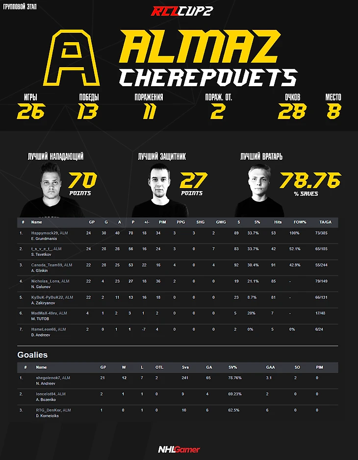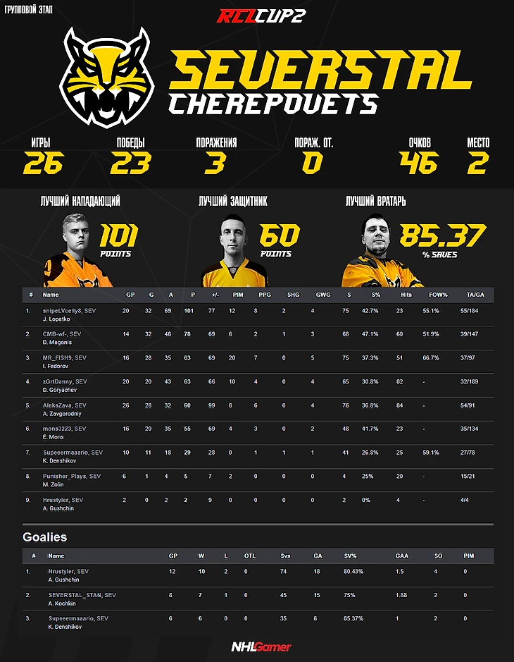 В Группе 1 череповецкий киберхоккей представляет команда «Алмаз», в Группе 2 находится киберкоманда Северсталь. Это второй чекпоинт на турнире и впереди нас ждут матчи на вылет, но обо всём по порядку.
