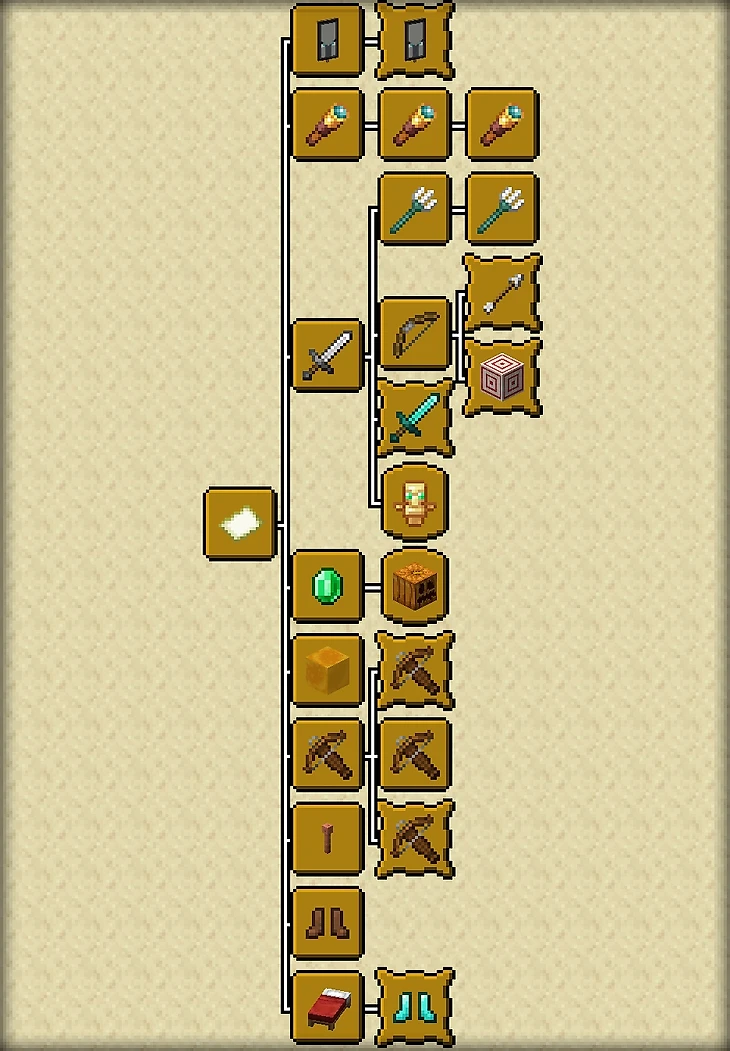 Всего в Minecraft насчитывается 5 ветвей с достижениями, каждая из которых заканчивается целью или испытанием:
