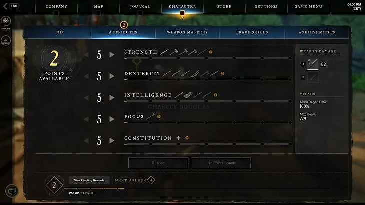 После того, как определитесь с любимыми видами оружия, прокачивайте соответствующие этому оружию атрибуты, а также конституцию (Constitution) – она отвечает за здоровье.