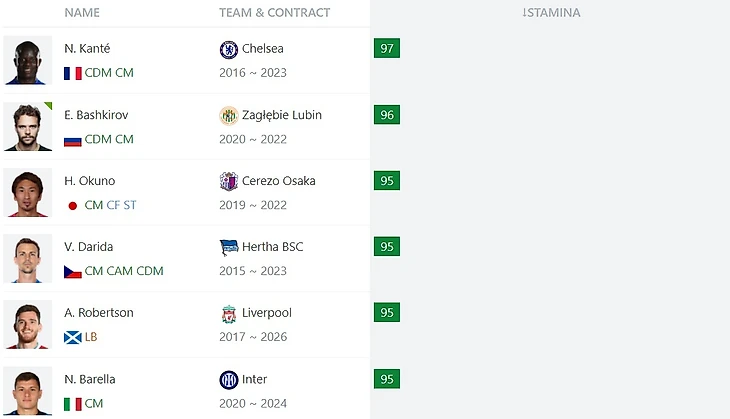 Полузащитник польского «Заглембе», которого вы можете знать по «Томи» и «Крыльям Советов», получил 96 баллов выносливости – он второй по этому показателю в игре. Лидирует Нголо Канте из «Челси» с 97 очками.