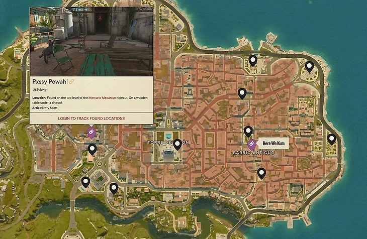 На территории столицы Яры можно отыскать два трека Pxssy Powah! и Here We Kum. Находятся песни в разных районах города. Первая лежит на верхнем уровне убежища на деревянном столе под навесом. Here We Kum располагается на крыше здания, где начиналась игра. Дом находится севернее Картехенского парка. На крыше будет будка, там же флешка с треком.