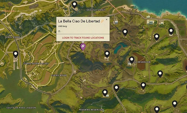 Найти песню El Bella Ciao de Libertad будет не просто из-за того, что она находится в горах. Восточнее от деревеньки, поднявшись к вышке, находится бункер. Спускаетесь в него и находите флешку с треком.