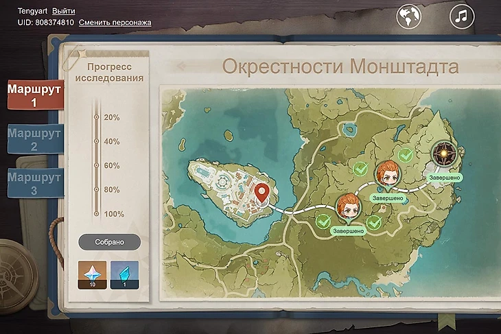 Когда попадете на нужную страницу, нажмите на кнопку «Начать исследование». Затем вы начнете свою небольшое путешествие. Перед вами находится карта. Вам предстоит пройти 3 локации: