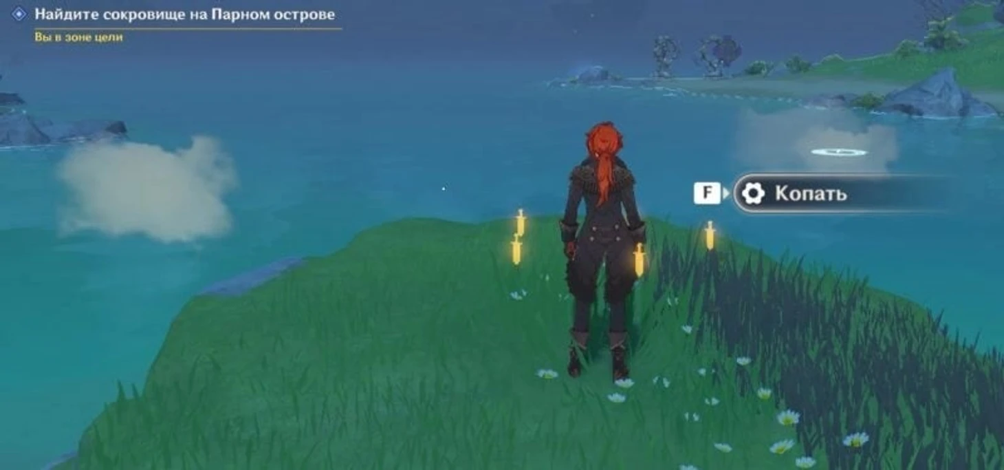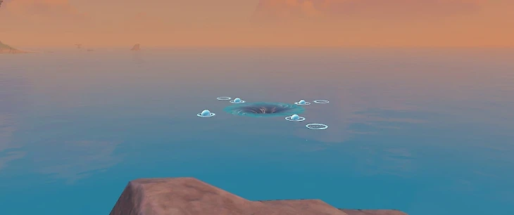 В воде между островами вы наткнетесь на пузыри. Лопайте их – появится следующий. Сделаете так 5-6 раз – в воде материализуется ящик с лутом.