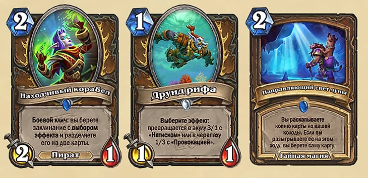 Все три карты Друида кажутся чрезвычайно полезными для разных архетипов: квестовый сможет разделять «Звериное неистовство» (и это не считая кучи эффектов для синергии «Находчивого корабела» в вольном), «Друид рифа» пригодится в агроколодах, а «Направляющий свет луны» выглядит лучше, чем заклинания Жреца «Любовь к тени» и «Темные видения» вместе взятые.