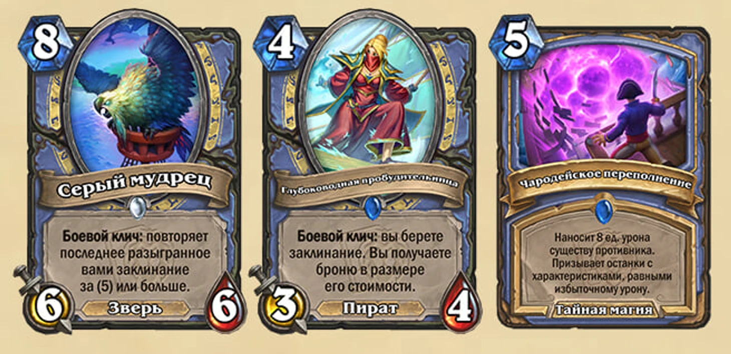 У Мага появился собственный пират – теперь вы видели все. Карты Мага из мини-набора рассчитаны на колоду с дорогими заклинаниями, а таких в текущей мете нет.