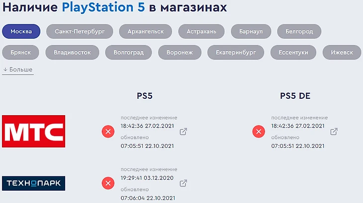 Со старта продаж стало понятно, что консоли просто так не купить. Тогда пользователь DTF под ником «qq» создал сервис мониторинга доступности PS5 и Xbox Series X|S в крупных российских сетях электроники. По задумке автора бот отслеживает свежие поступления консолей в магазины и уведомляет об этом пользователей.