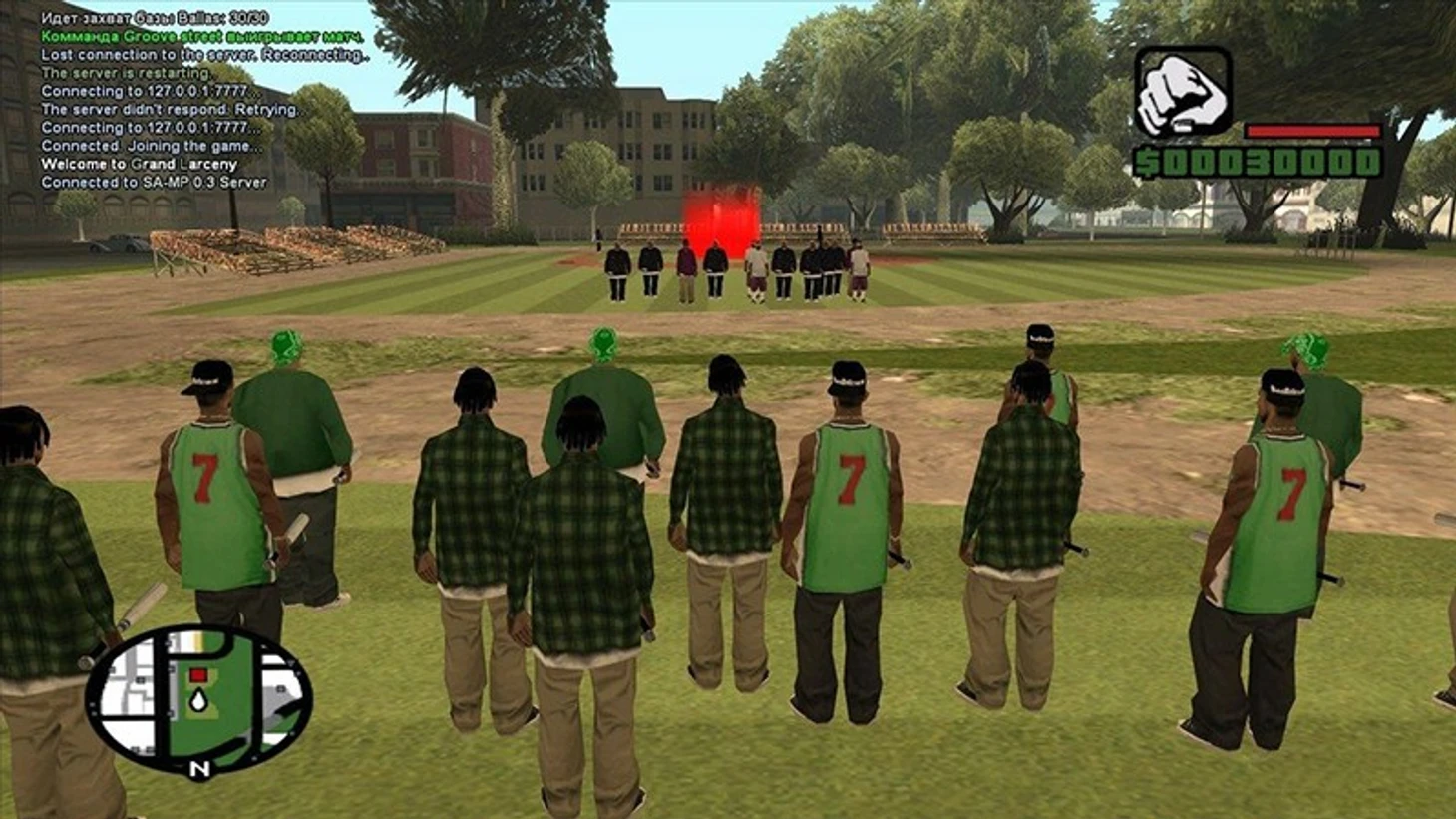 А как же весело было находиться в банде! Конечно, большинство игроков всегда вступали в Грув, но я долгое время играл за мексиканскую группировку Vagos. Когда я только пришел туда, у банды вообще не было завоеванных территорий (в SAMP банды борются за небольшие секторы, разбросанные по Лос-Сантосу), но спустя пару месяцев игры мы с друзьями вывели ее на первое место во всем штате, обойдя даже Грув. До сих пор этим горжусь.