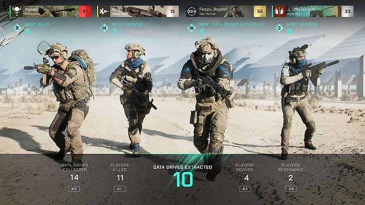 Нашли капсулу, другую – и появляются два варианта дальнейших действий. Практичный заключается в том, чтобы пересидеть в месте потише и когда на карту высадится вертолет эвакуации, драпануть в нужный момент, чтобы успеть на него и не получить люлей. Второй вариант рисковый и требует хорошей подготовки всех членов отряда. Поскольку при нем потребуется агрессивная игра, охота за вражескими отрядами и настоящий грабеж. Чем больше носителей эвакуировали, тем больше кредитов заработали и опыта получили. Опыт, кстати, общий для всех режимов Battlefield 2042.