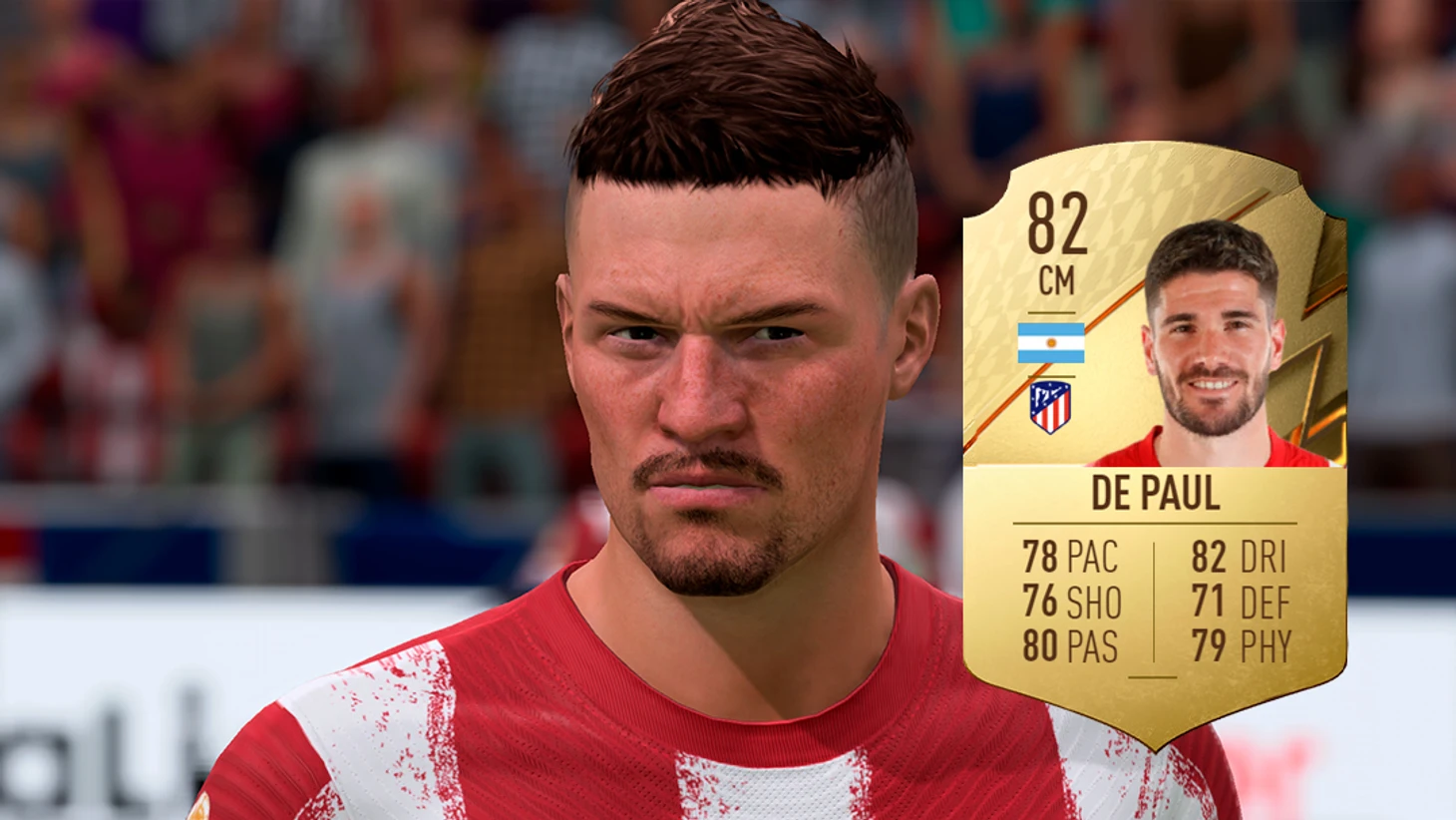 В FIFA 22 де Пауль имеет универсальную карточку в центре поля, отличающуюся прекрасной техникой. Все портит внутриигровое лицо, которому уже много лет.