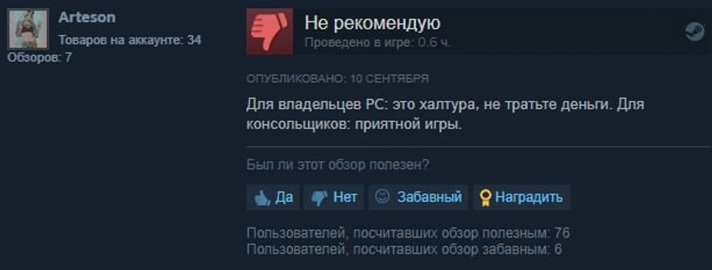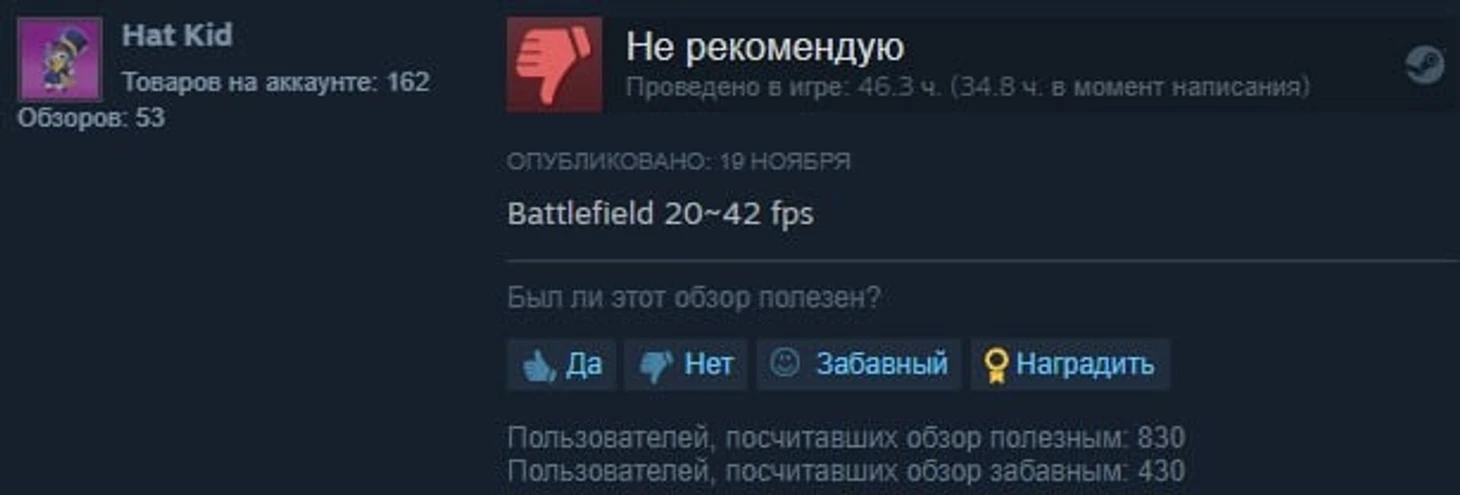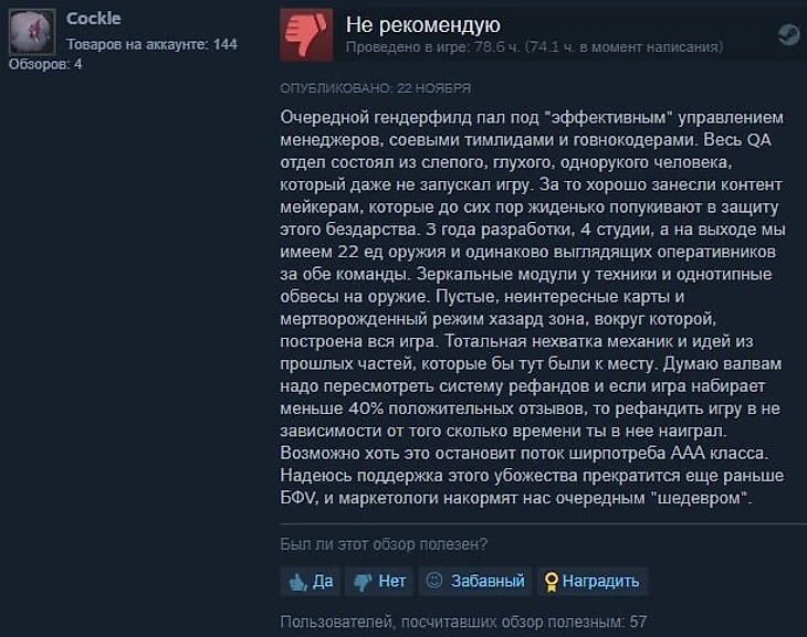 Для одного из блокбастеров года оказаться в этом списке – сущий кошмар. Шутер ждали три года, после неудачного Battlefield V фанаты надеялись на возврат серии к истокам. DICE придерживались другого плана, итог – всего 27% положительных отзывов из 40 тысяч.