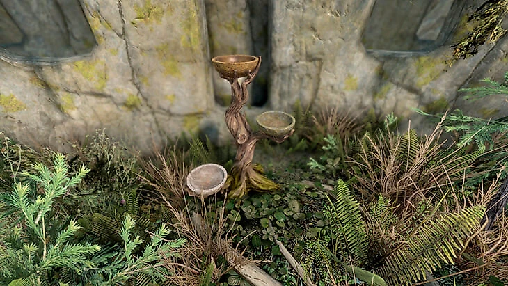 Как только Довакин сорвет их, на него нападут спригганы. После этой драки нужно вернуться в Скайрим, найти любой котелок в своем доме или чужом, сварить в нем похлебку из плодов железного дерева, жареной злокрысьей ноги и соли, а потом вручить ее жрице. Через день больной поправится и поблагодарит за помощь, подарив Горькую чашу и свой именной кинжал. Его можно будет даже взять в спутники.