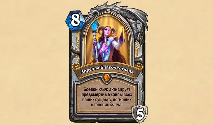 Как же страдал Жрец в последнем дополнении! Наконец, мольбы игроков услышаны – ему дали колодообразующую карту. Зирелла Благочестивая сможет вернуть биг-колоды из того места, куда они попали после ротации части карт в вольный.