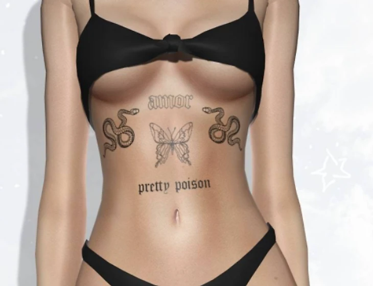 Универсальные (подойдут как мужчинам, так и женщинам) тату живота в Sims 4. Все тату черного цвета.