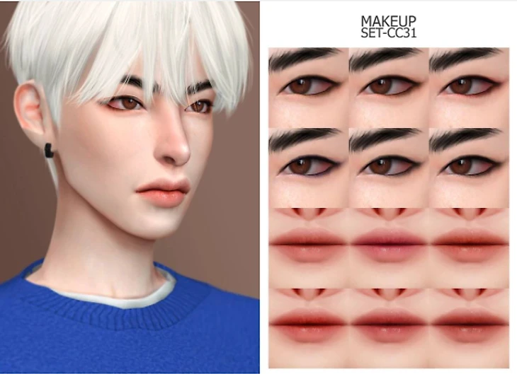 Универсальный мод, как для мужских, так женских симов в Sims 4. На выбор шесть типов губ и шесть подводок для глаз.
