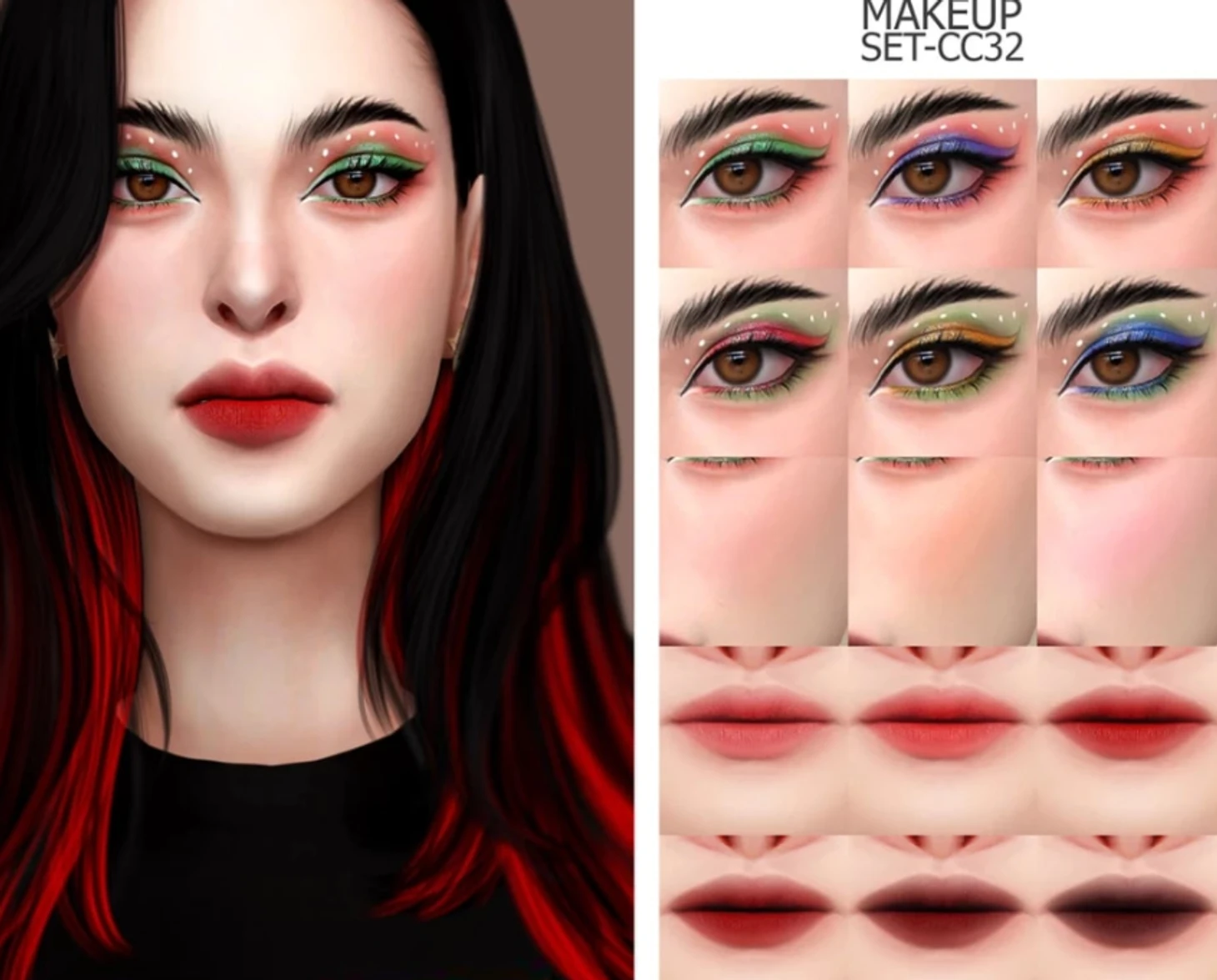В этом моде на внешность поддерживаются шесть разных типов мейкапа для глаз, помада шести цветов и три типа румян. Доступен женским симам.