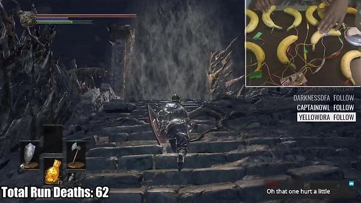 Серию Souls принято считать невероятно хардкорной. С самого начала игры мы настраиваемся на то, что нас ждут едва преодолимые препятствия. Когда же мы проходим даже небольшие испытания, то чувствуем приток эндорфинов. В конечном итоге мы не обращаем внимания на то, что неубиваемые боссы погибают через несколько попыток, а непроходимые локации медленно, но верно проходятся. Орнштейн и Смоуг, Арториас и Мидир – сложные препятствия, но все равно найдутся трайхарды, которые вынесут их, играя на бананах вместо контроллера.