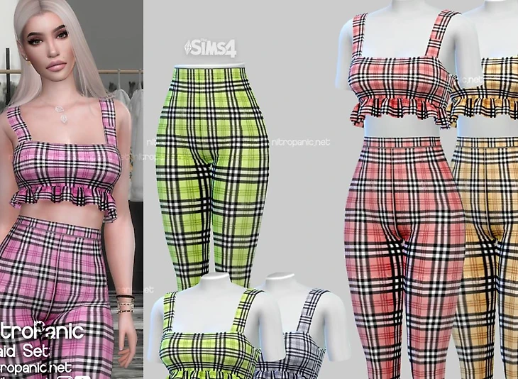 Мод на одежду для симов-женщин. Состоит из топа и высоких штанов. Одежда доступна в восьми разных цветах и с высоким качеством текстур.