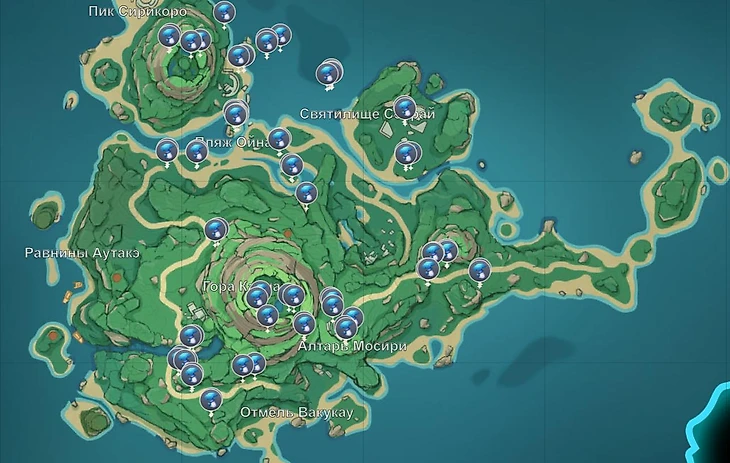 Светящийся гриб в Геншин Импакт находится на острове Цуруми (в Инадзуме)
