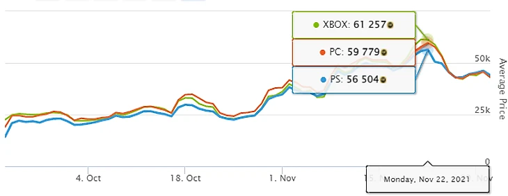 Как видно из графика, за 2 месяца FUT Кейн успел 4 раза показать максимальную стоимость и помог заработать трейдерам. В последний пик он стоил все 60 тысяч – на несколько десятков тысяч дороже, чем раньше.