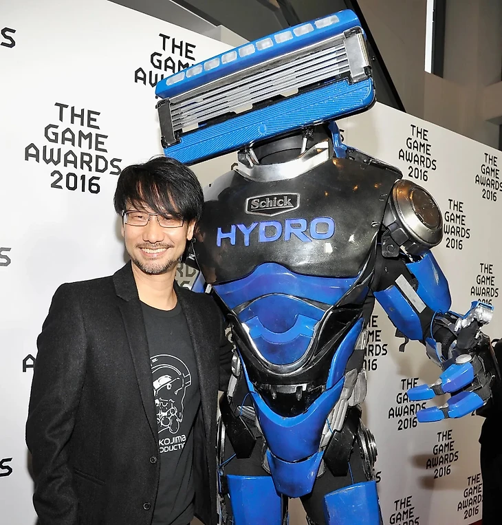 The Game Awards одной картинкой: геймдизайнер и давний краш Кейли – Хидэо Кодзима – в обнимку с живой рекламой станка для бритья.