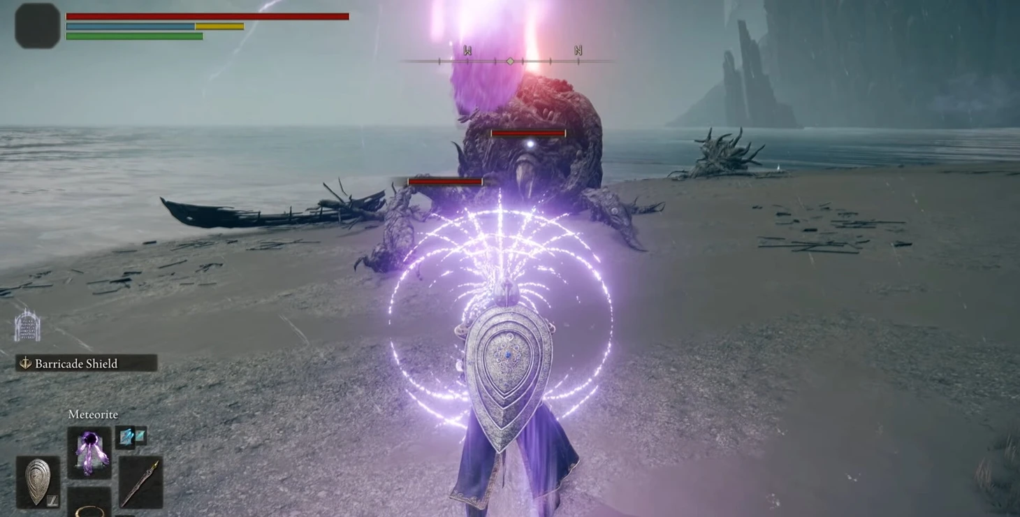 Эффект фиолетового свечения вокруг его кинжалов точно такой же, как у магии гравитации, доступной в бета-тестировании Elden Ring. А на самих клинках выгравированы такие же символы, как появляющиеся во время каста заклинаний гравитации.