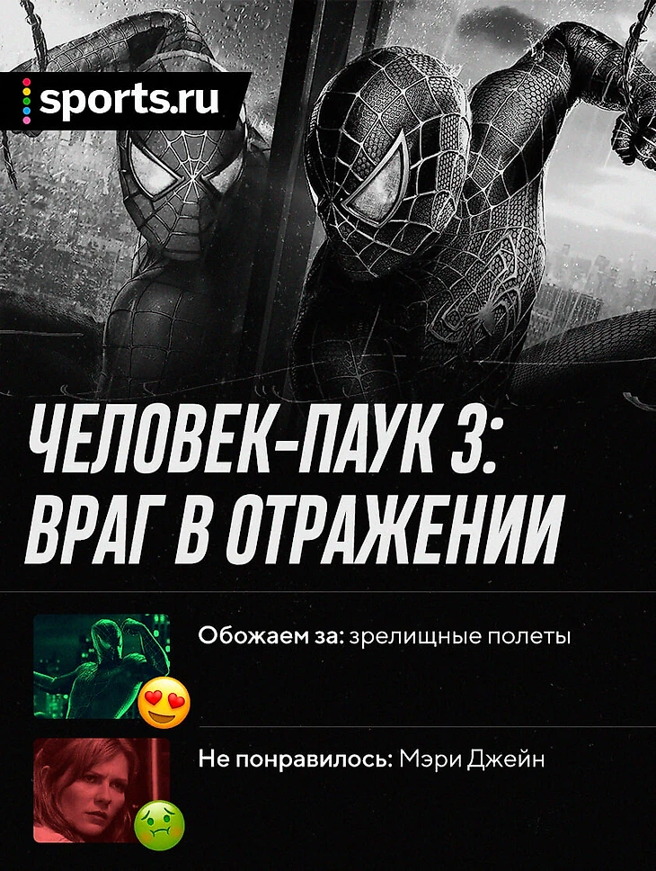 Самый слабый фильм вселенной по мнению редакции. В нем худший герой и нелюбимая девушка Человека-паука. Иван Горбатенков про финал трилогии и героя Тоби Магуайра: «В «Человеке-пауке 3» ужасно все. В фильм Рэйми продюсерскими усилиями запихали миллион персонажей, которым просто не хватает экранного времени на хоть какое-то развитие. Такая же проблема и у титульного героя, который оказывается простым камнем, вокруг которого и течет сюжет. А за похождениями камней смотреть скучно».