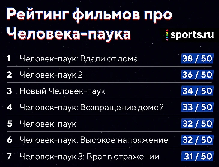 На данный момент франшиза насчитывает семь художественных фильмов. Перед выходом «Нет пути домой» редакция Sports.ru оценила все фильмы по 10-бальной шкале в пяти ключевых номинациях: герой, злодей, девушка, драки и полеты. Далее мы посчитали средние показатели и подвели итоги. Вливайтесь: