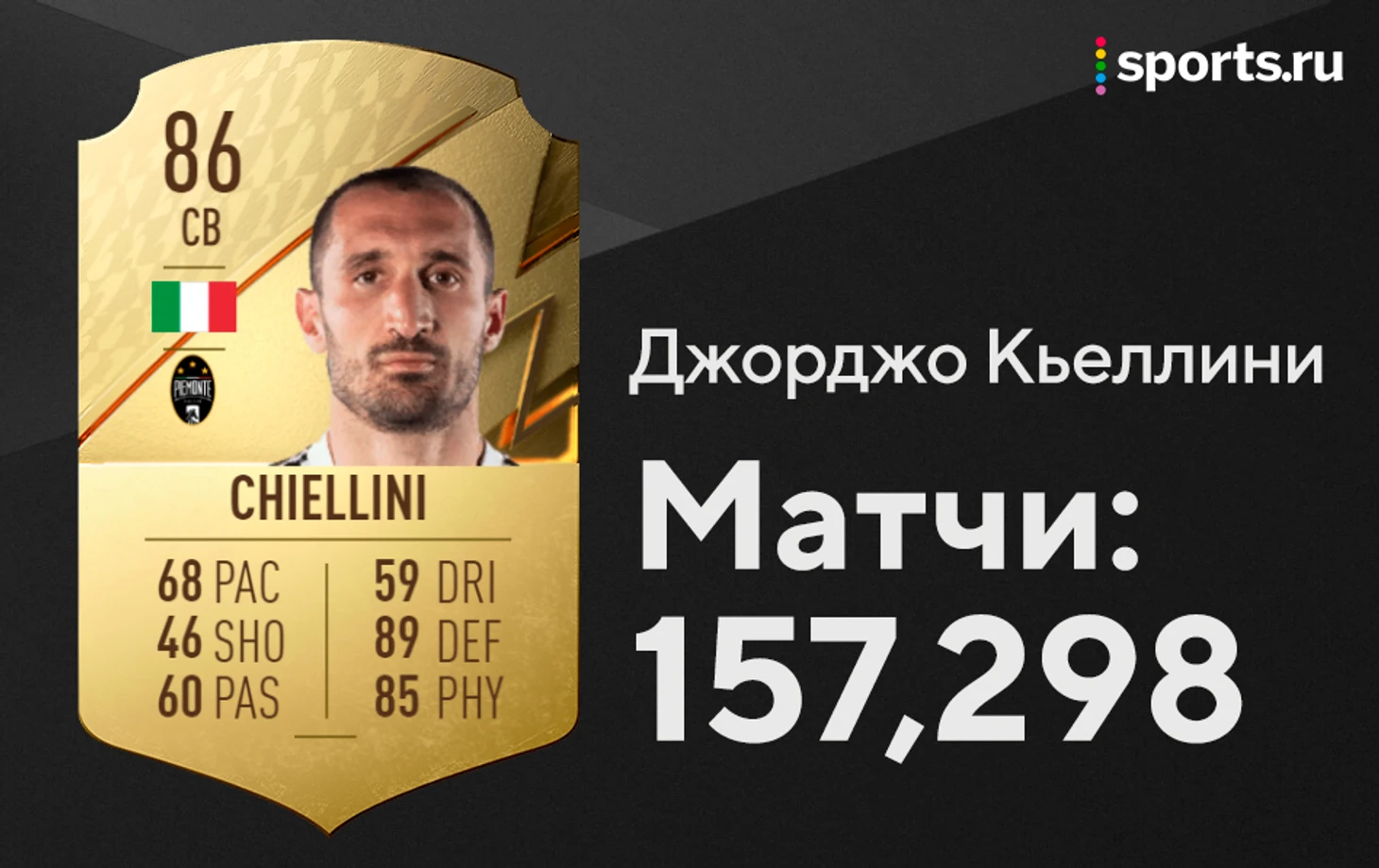 Низкая популярность Кьеллини удивительна. Она показывает, насколько сильно для FIFA-сообщества важны скоростные характеристики. С «Тенью» недорогой Джорджо имеет приемлемые для базовой версии показатели спринта (79) и фантастический уровень защитных навыков. Пройти его один в один становится практически невозможно.