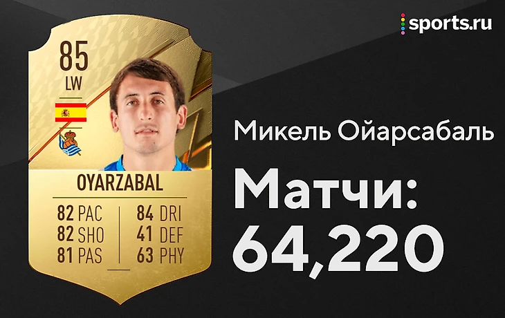 Ойарсабаль продолжает играть за «Реал Сосьедад», из-за чего остается незаметным игроком для широкой фан-базы. В FIFA ему также сделали средние характеристики. Он во всем хорош в меру: имеет 3 звезды финтов и рабочей ноги. На фоне Азара и Карраско его карточка на левом фланге атаки Ла Лиги теряется.