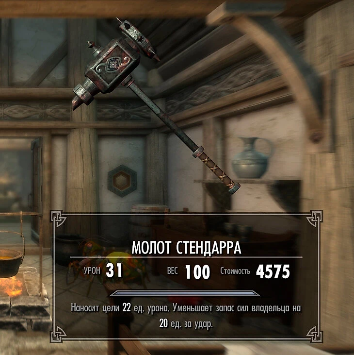 В дополнении «Трибунал» для Morrowind добавили огромный и тяжелый молот Стендарра. Спустя двадцать лет он появился в Skyrim с тем же недостатком: при каждом ударе молот отнимает у владельца 20 единиц запаса сил.