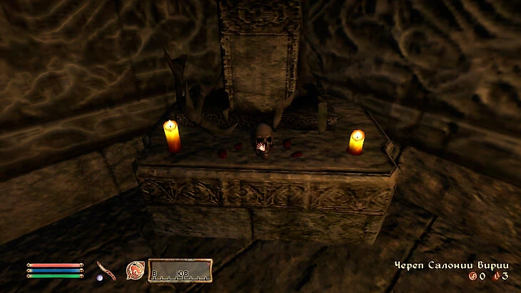 На левой от входа колонне находится кнопка, открывающая потайную дверь. Там и находится нужный череп. Кстати, с ним можно прийти к Эрверу Дивейну, живущему в Дипваллоу, и поговорить о его сестре Ралвел. После того, как ее душа обретет покой, Эрвер наградит героя.