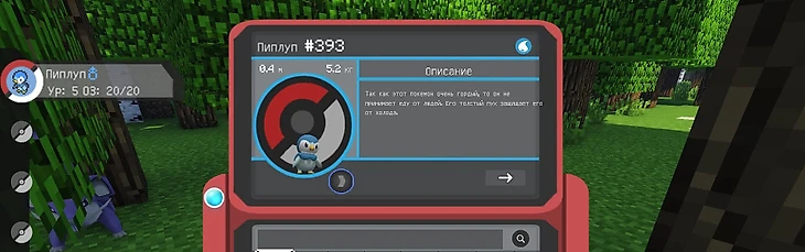 Один из самых популярных модов, добавляющий в игру Покемонов! Их можно будет ловить, сражаться с противниками или NPC, также в игре появится великое множество нового лута и игровых механик. В начале игры вам дадут одного покемона, с его помощью вы будете сражаться с другими игроками. Бои – пошаговые, вы выбираете тактику, сначала ваш покемон делает ход, затем – противник, и так пока у одного из них не останется хп.