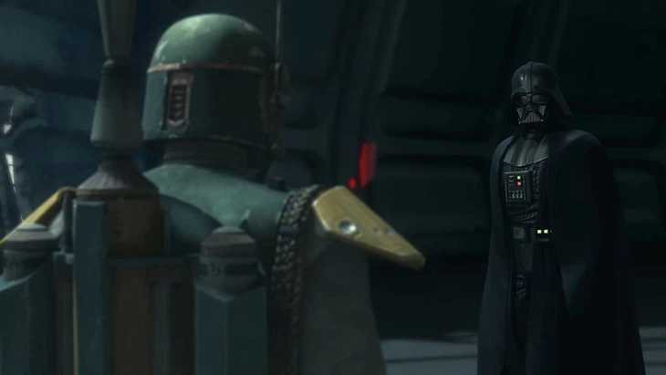 В DLC к первой части тоже была своя жесть. В миссии на Татуине Старкиллер сжег Оби-Вана Кеноби в двигателе «Сокола тысячелетия». А перед этим сражался с Бобой Феттом в ангаре дворца Джаббы, из которого в четвертой серии сериала Фетт выкрал «Раба-1».
