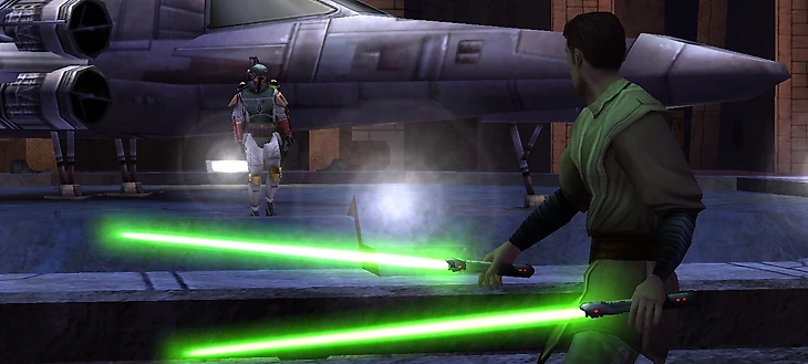 После главный герой докладывает своему учителю Кайлу Катарну. Тот восхищается победой своего падавана и говорит, что когда он столкнулся с Феттом, схватка была напряженнее. Катарн действительно сражался с Бобой в игре Dark Forces 1995 года. В ней наемник преграждал путь к раскрытию тайн империи − созданию модифицированных темных штурмовиков.