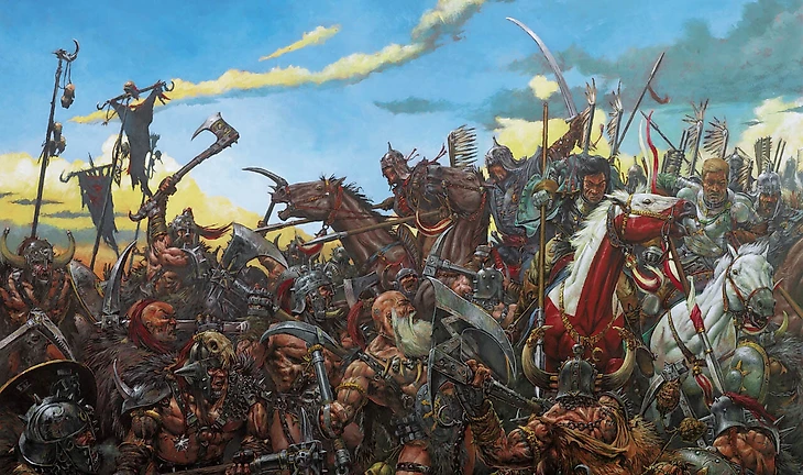 Спустя годы WH40K приобрел по настоящему культовый статус - книжные серии, фильмы, видеоигры... а вот WFB вроде как оказался никому и не нужен. И либо из жалости к своему творению, либо из любви к шуршанию зеленых президентов GW делают ход конем и существенно реформируют WFB, впендюривая туда как можно понятных и узнаваемых деталей и отсылок из WH40K, так хаос из банды фанатиков поклоняющихся космической НЕХ превращается в полноценную фракцию, орки до сего момента владевшие тактикой и ходившие строем научились делать Waaagh! а магия будучи ранее просто магией теперь стала завязана на варпе.