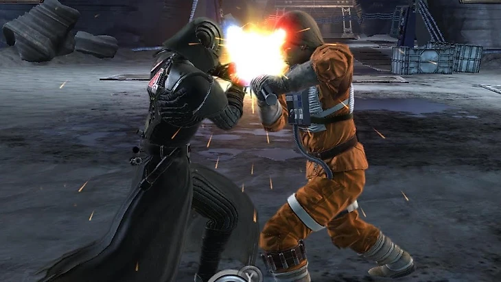 Обычно мы видим Дарта Вейдера непобедимым и величественным ситхом, который не встречает реального сопротивления. Но в бою со Старкиллером он кажется не просто уязвимым, а даже жалким. В первой части боссфайта Старкиллер срезает с Вейдера элементы брони и шлем.