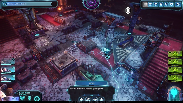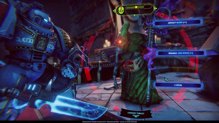 Пока что бои кажутся лучшим, что будет в Chaos Gate. Мне понравилась насыщенная цветовая гамма, эффекты взрывов и оформление боевого интерфейса. Враги хорошо различимы и действительно выглядят как слуги Нургла. Разрушаемость хорошо вписана в игровой процесс и кажется перспективным элементом тактики.