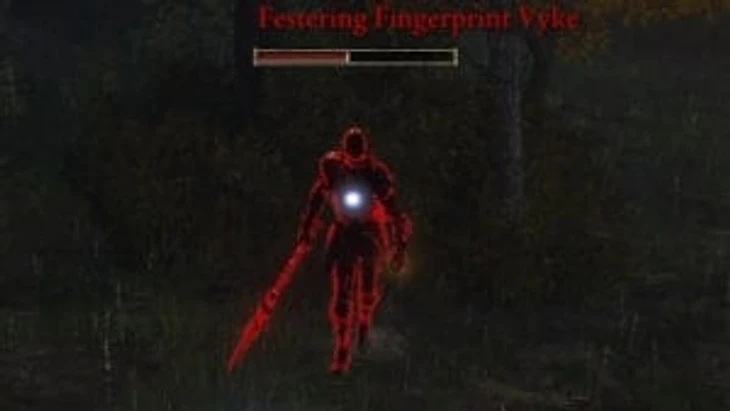 «Гнойный Отпечаток Пальца Вайк» вторгнется в ваш мир в «Церкви Запрета», только если вы достигли четвертого этапа «Квеста Хьетты» (женщина, которая просит «Виноград Шабрири»). «Вайк» – довольно простой захватчик, с агрессивным стилем игры и «Дальнобойным Копьем». Его атаки довольно быстро накапливают уровень безумия, поэтому если вас ударят два или три раза подряд, вы, скорее всего, умрете на месте. Поэтому играйте терпеливо и используйте тяжелые атаки, чтобы прервать его удары.