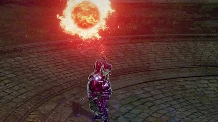 Когда у него останется половина здоровья, он исчезнет и вернется в виде пылающей кометы. Пока его нет, бегайте вокруг «Гребня Холма» и призывайте больше союзников. В этой фазе он наколдует вокруг себя четыре метеора. Продолжайте призывать «Пепел Духа Кольца Элден» и сбивать его, когда это возможно, но держитесь ближе к «Гребню Холма». Когда он будет убегать от вас, он будет посылать метеоры, поэтому используйте «Гребень Холма», чтобы блокировать их.