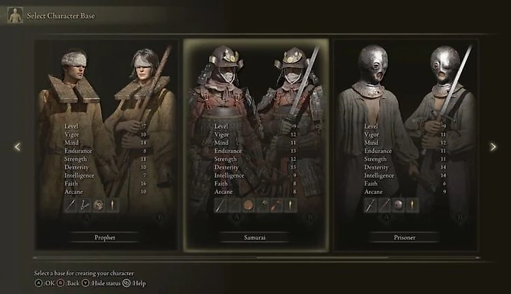 В данном классе у вас не будет много шансов применить навыки магии из-за низкого уровня веры и интеллекта, но это не исключает возможности для повышения этих показателей. Невзирая на все недостатки, “Самурай”, бесспорно, является одним из самых универсальных начальных вариантов из всех предлагаемых.