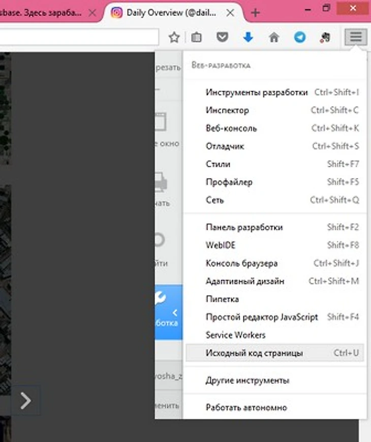Сохранение фото с использованием исходного кода веб-страниц – универсальный способ скачивания фотофайлов на ПК не только из Инстаграма, но и из других сайтов в Интернете. Для его использования вам нужно перейти в саму социальную сеть, открыть необходимую фотографию и щелкнуть по ней правой кнопкой мыши. В открывшемся окне выберите опцию “Просмотр исходного кода страницы” или воспользуйтесь сочетанием клавиш Ctrl+U.